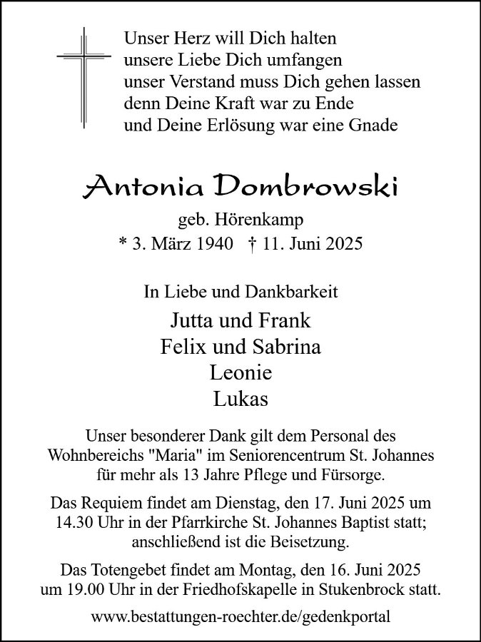 Antonia Dombrowskigestorben am 11. Juni 2025
