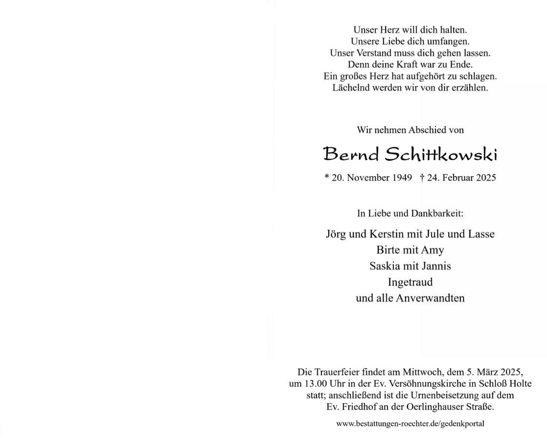 Bernd Schittkowskigestorben am 24. Februar 2025