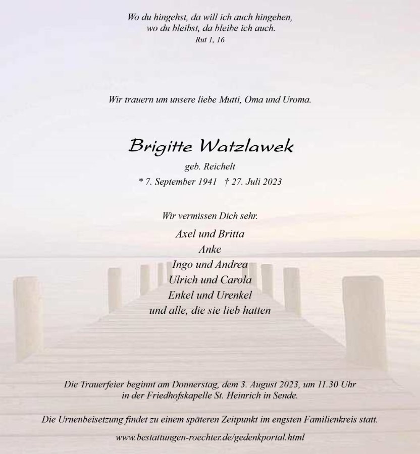 Brigitte Watzlawekgestorben am 27. Juli 2023