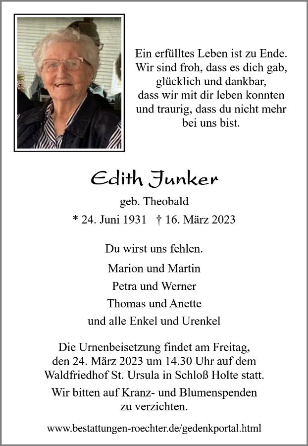 Edith Junkergestorben am 16. März 2023