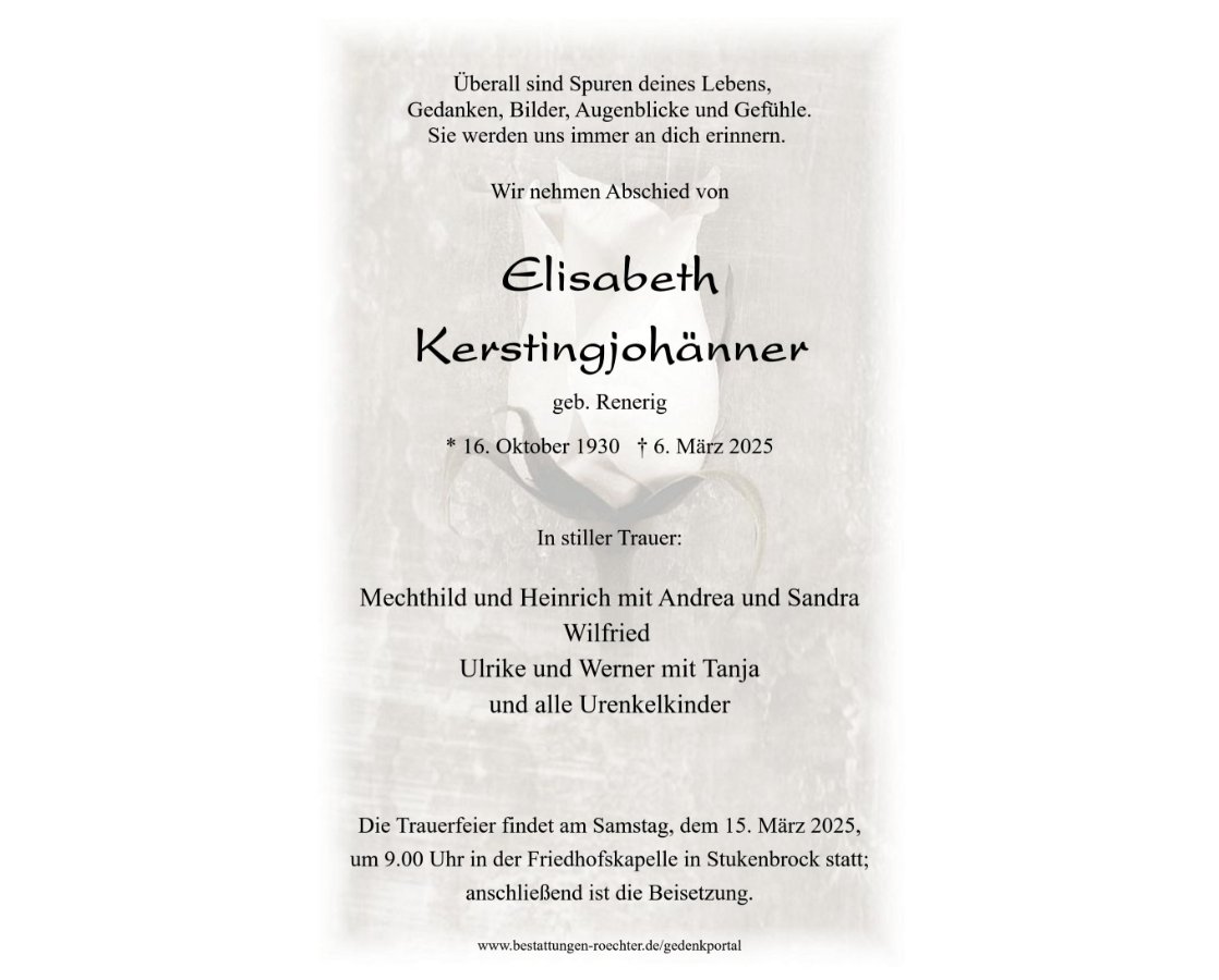 Elisabeth Kerstingjohännergestorben am 6. März 2025