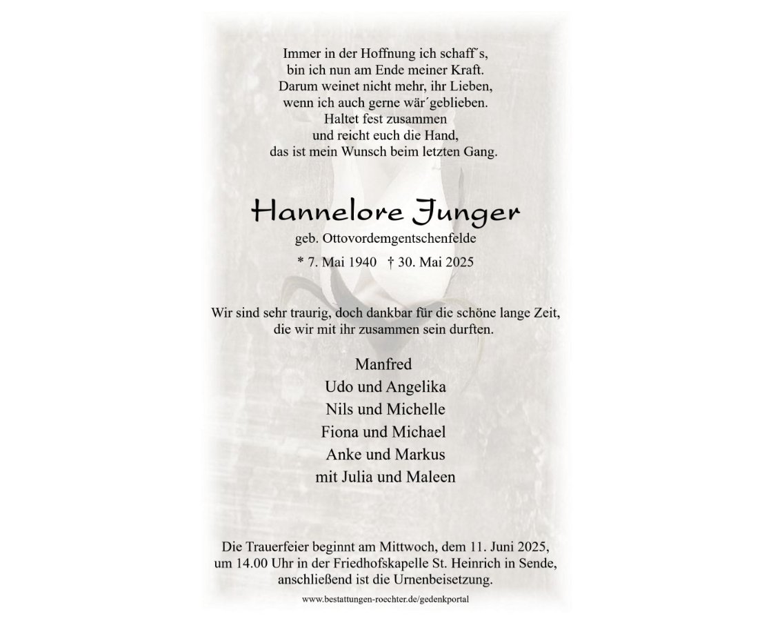 Hannelore Jungergestorben am 30. Mai 2025