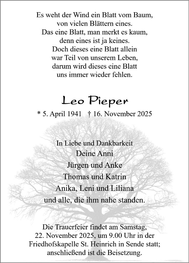 gestorben am 16. November 2025 in Schloß Holte-Stukenbrock