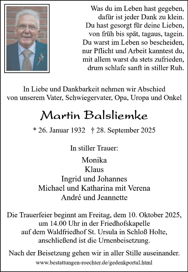 gestorben am 28. September 2025 in Schloß Holte-Stukenbrock
