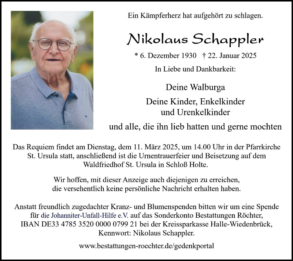 Nikolaus Schapplergestorben am 22. Januar 2025