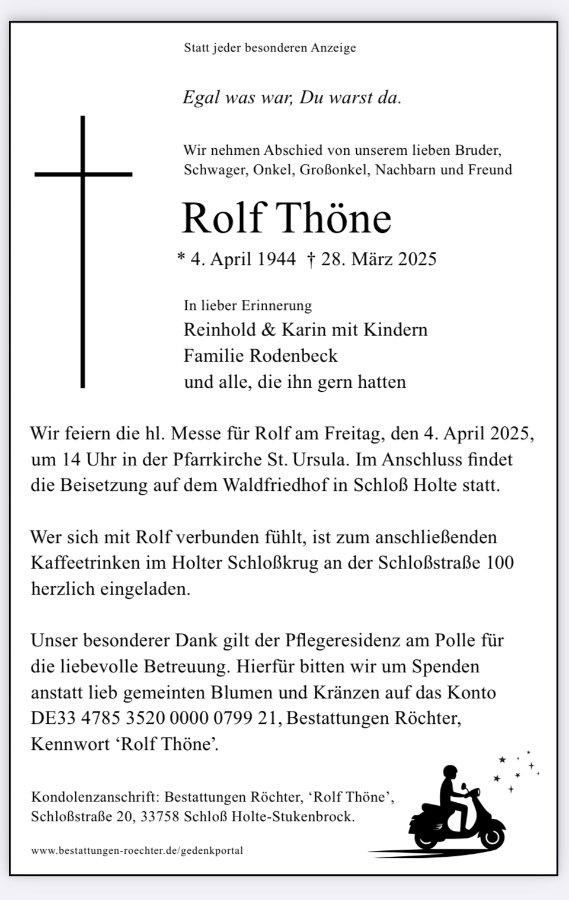 gestorben am 28. März 2025 in Schloß Holte-Stukenbrock