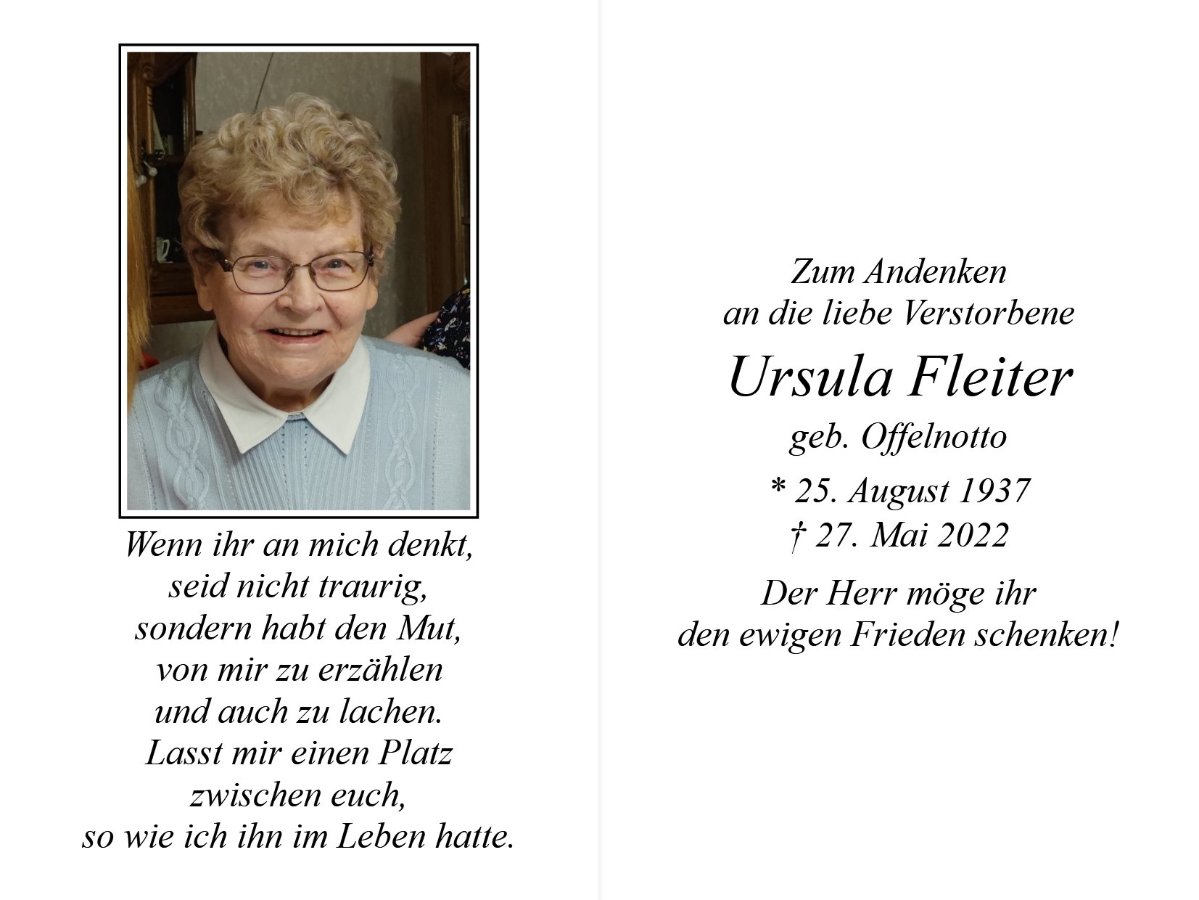 Ursula Fleitergestorben am 27. Mai 2022